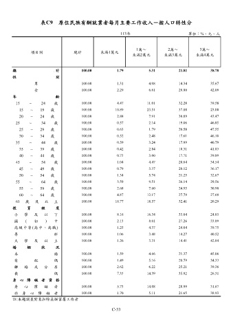 表C9 原住民族有酬就業者每月主要工作收入-按人口特性分