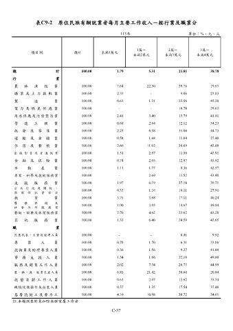 表C9-2 原住民族有酬就業者每月主要工作收入-按行業及職業分