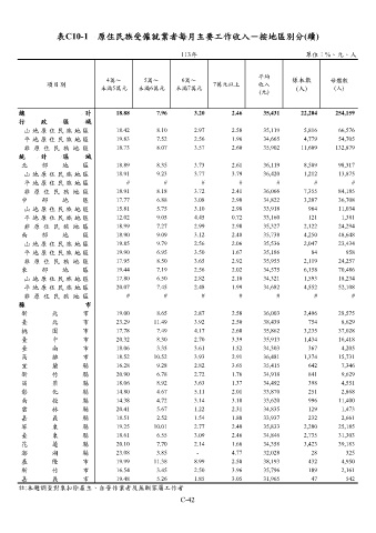 表C10-1 原住民族受僱就業者每月主要工作收入-按地區別分(續)