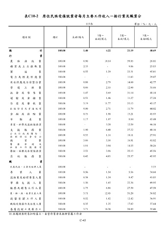 表C10-2 原住民族受僱就業者每月主要工作收入-按行業及職業分