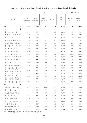 表C10-2 原住民族受僱就業者每月主要工作收入-按行業及職業分(續)