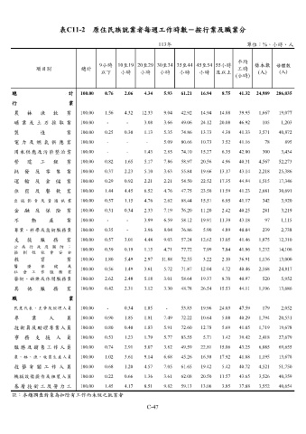 表C11-2 原住民族就業者每週工作時數-按行業及職業分