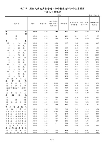 表C12 原住民族就業者每週工作時數未達35小時主要原因
