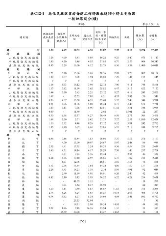 表C12-1 原住民族就業者每週工作時數未達35小時主要原因