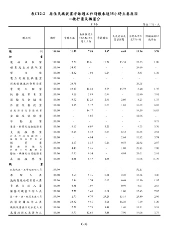 表C12-2 原住民族就業者每週工作時數未達35小時主要原因