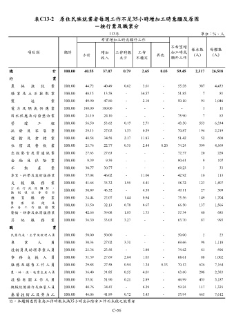 表C13-2 原住民族就業者每週工作不足35小時增加工時意願及原因