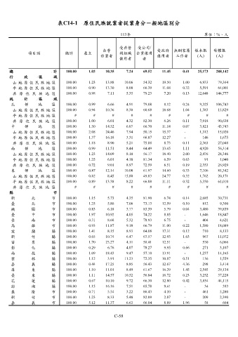 表C14-1 原住民族就業者從業身分-按地區別分