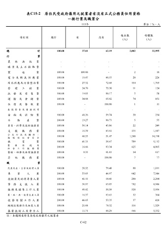 表C15-2 原住民受政府僱用之就業者有沒有正式公務員任用資格