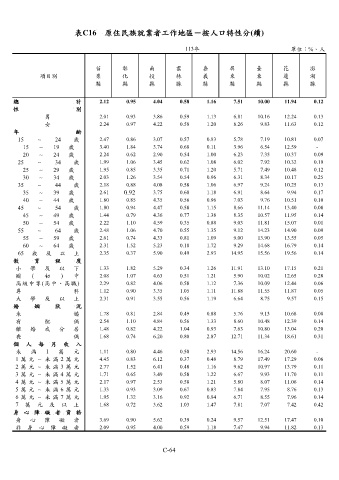 表C16 原住民族就業者工作地區-按人口特性分(續)