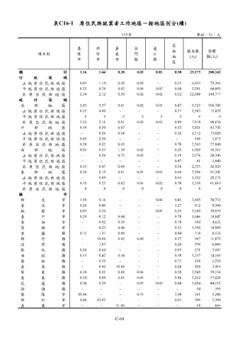 表C16-1 原住民族就業者工作地區-按地區別分(續)