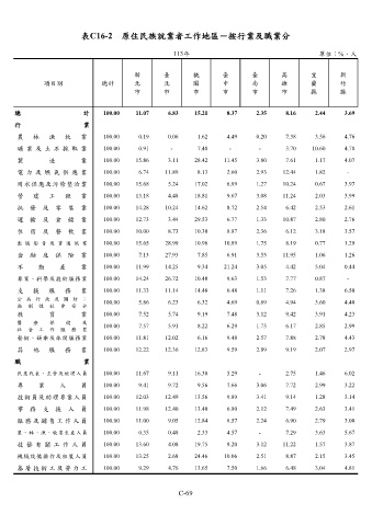 表C16-2 原住民族就業者工作地區-按行業及職業分