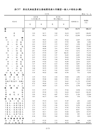 表C17 原住民族就業者主要經濟來源工作類型-按人口特性分(續)
