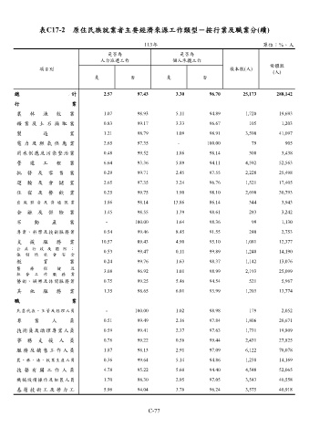 表C17-2 原住民族就業者主要經濟來源工作類型-按行業及職業分(續)