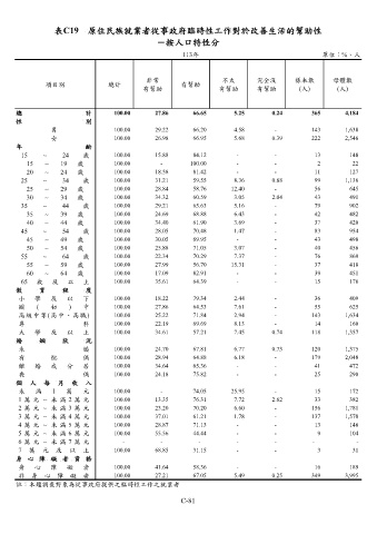 表C19 原住民族就業者從事政府臨時性工作對於改善生活的幫助性