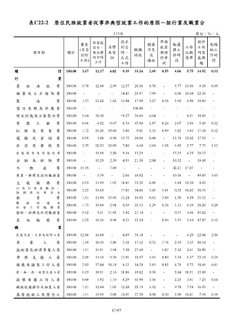 表C22-2 原住民族就業者從事非典型就業工作的原因-按行業及職業分