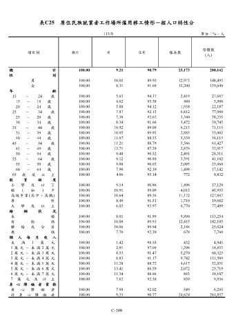 表C25 原住民族就業者工作場所僱用移工情形-按人口特性分
