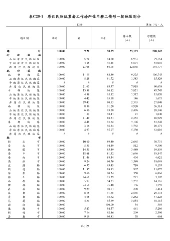 表C25-1 原住民族就業者工作場所僱用移工情形-按地區別分