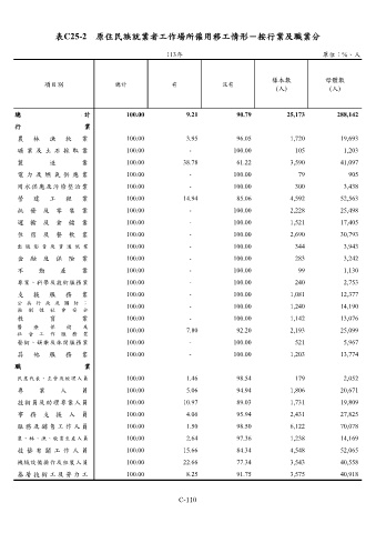 表C25-2 原住民族就業者工作場所僱用移工情形-按行業及職業分