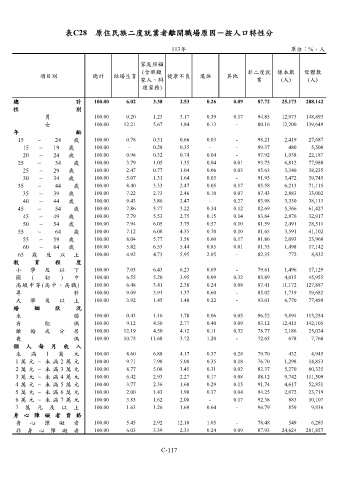 表C28 原住民族二度就業者離開職場原因-按人口特性分