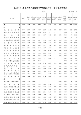 表C29-2 原住民族二度就業者離開職場時間-按行業及職業分