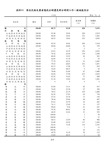 表D3-1 原住民族失業者想找全時還是部分時間工作-按地區別分