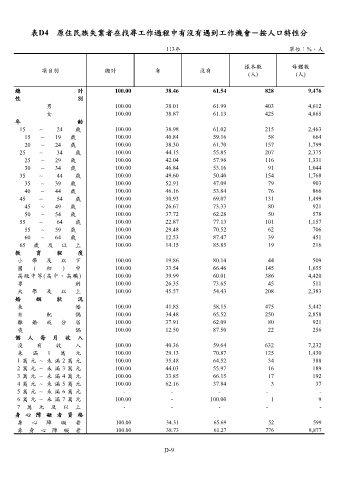 表D4 原住民族失業者在找尋工作過程中有沒有遇到工作機會-按人口特性分