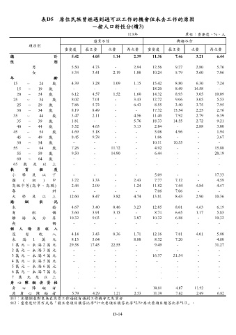 表D5 原住民族曾經遇到過可以工作的機會但未去工作的原因