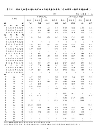 表D5-1 原住民族曾經遇到過可以工作的機會但未去工作的原因-按地區別分(續1)