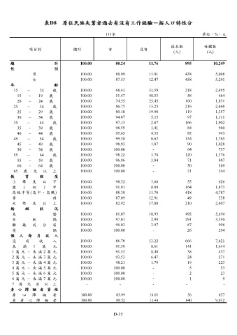 表D8 原住民族失業者過去有沒有工作經驗-按人口特性分