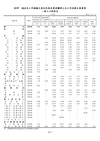 表D9 過去有工作經驗之原住民族失業者離開上次工作的最主要原因