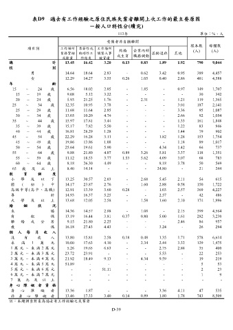 表D9 過去有工作經驗之原住民族失業者離開上次工作的最主要原因