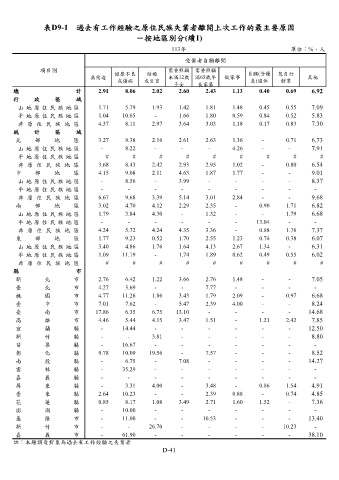 表D9-1 過去有工作經驗之原住民族失業者離開上次工作的最主要原因