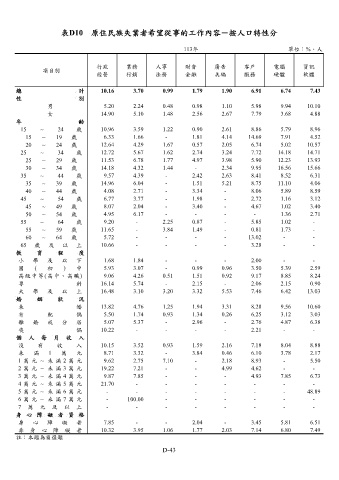 表D10 原住民族失業者希望從事的工作內容-按人口特性分