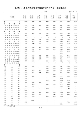 表D10-1 原住民族失業者希望從事的工作內容-按地區別分