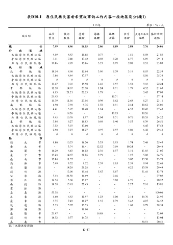 表D10-1 原住民族失業者希望從事的工作內容-按地區別分(續1)