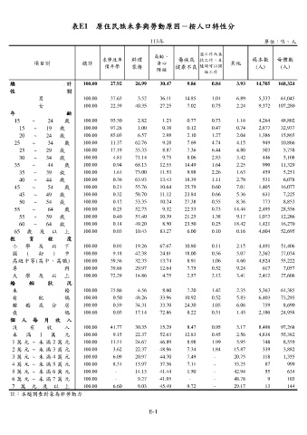 表E1 原住民族未參與勞動原因-按人口特性分