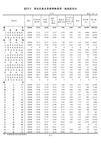 表E1-1 原住民族未參與勞動原因-按地區別分