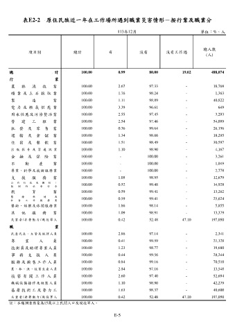 表E2-2 原住民族近一年在工作場所遇到職業災害情形-按行業及職業分