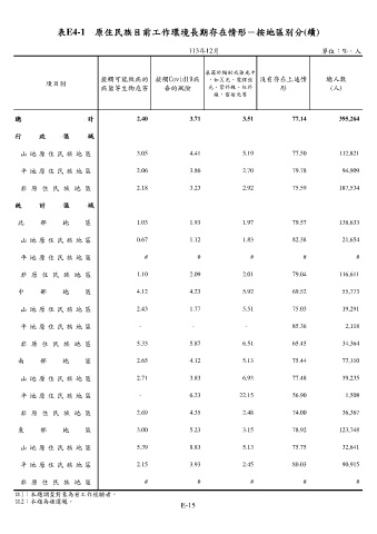 表E4-1 原住民族目前工作環境長期存在情形-按地區別分(續)