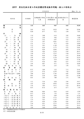 表E5 原住民族目前工作的身體姿勢或動作問題-按人口特性分