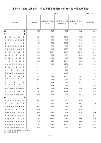 表E5-2 原住民族目前工作的身體姿勢或動作問題-按行業及職業分