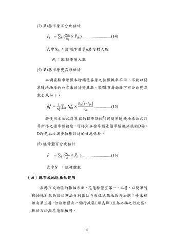 單隨機抽樣的公式來估計變異數。第i縣市層抽樣下百分比變異