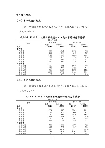 表2-2-3 113 年第 1 次原住民族受訪戶、受訪者區域分布情形