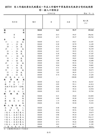 表E14 有工作過的原住民族最近一年在工作場所中因為原住民族身分受到歧視情
