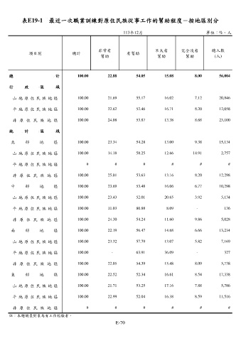 表E19-1 最近一次職業訓練對原住民族從事工作的幫助程度-按地區別分
