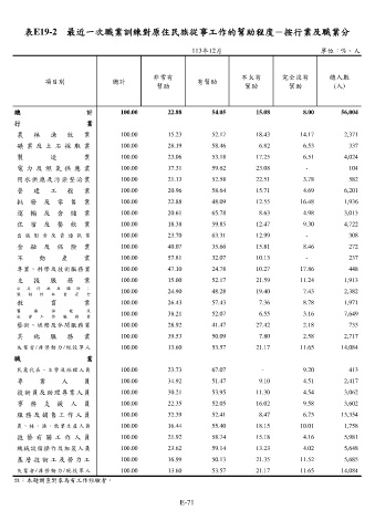 表E19-2 最近一次職業訓練對原住民族從事工作的幫助程度-按行業及職業分