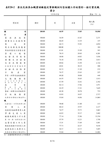 表E20-2 原住民族參加職業訓練後從事與職訓內容相關工作的情形-按行業及職