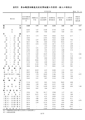 表E21 參加職業訓練後沒有從事相關工作原因-按人口特性分