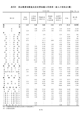 表E21 參加職業訓練後沒有從事相關工作原因-按人口特性分(續)