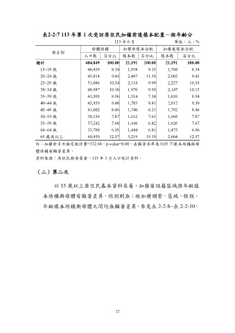 表2-2-7 113 年第 1 次受訪原住民加權前後樣本配置-按年齡分